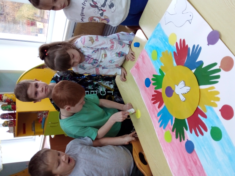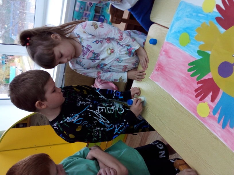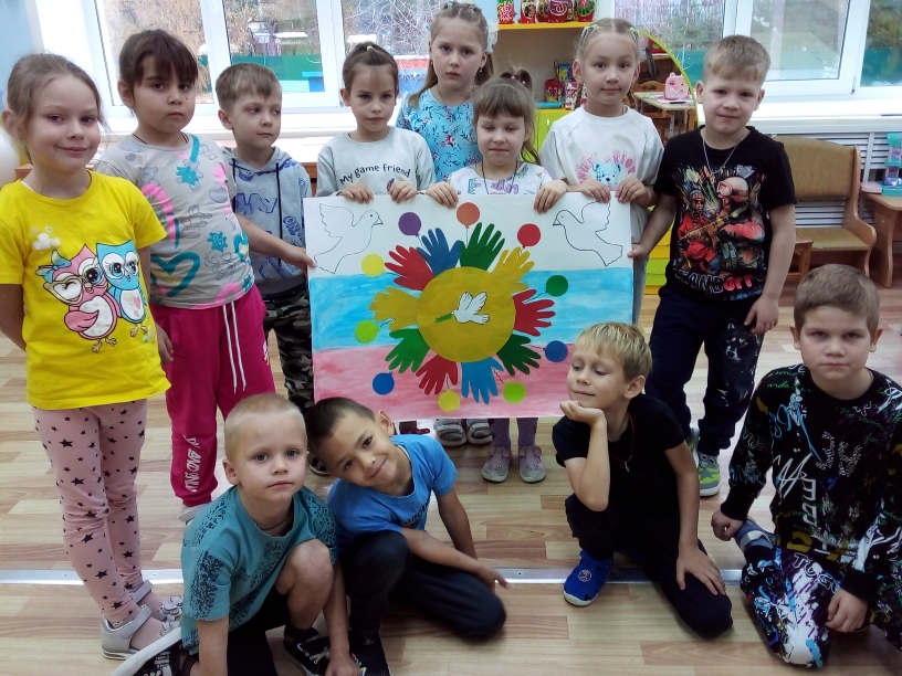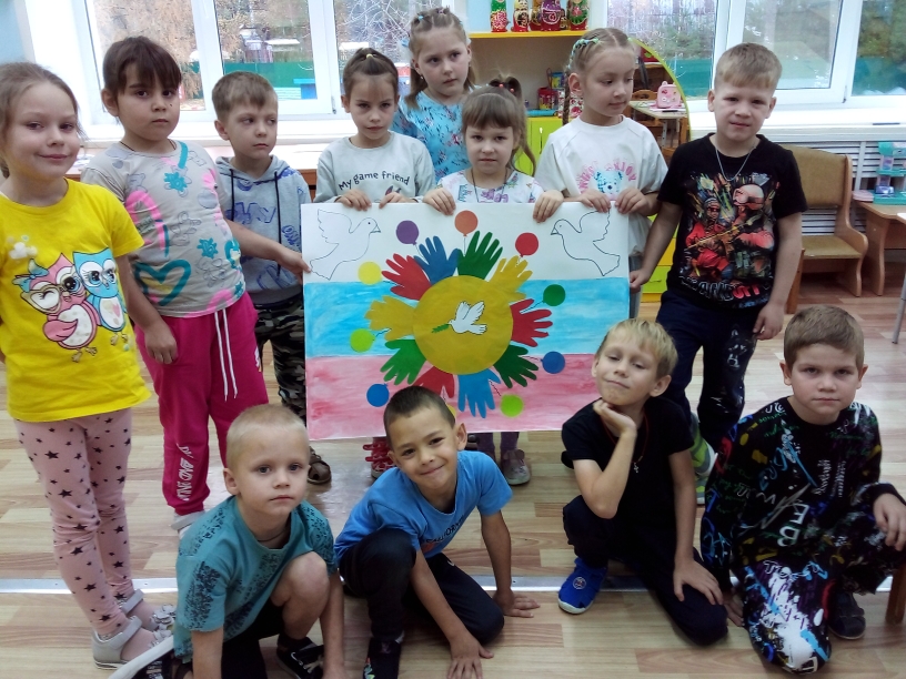 Группа " Ромашка " , выпустила праздничную стенгазету посвященную Дню народного единства " Я , ты , он , она _ вместе дружная страна " . Такая творческая работа создает условия для развития чувства патриотизма и уважение к историческому прошлому страны.