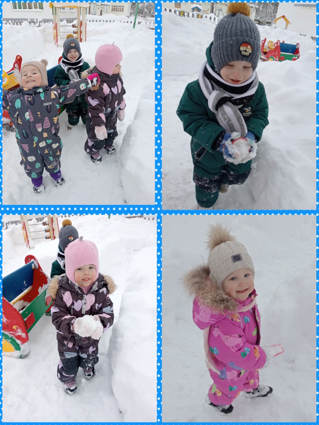Самым любимым развлечением для ребят в зимнее время являются игры со снегом. Румяные щечки, блестящие глазки и отличное настроение – вот результат прогулок зимой!!!