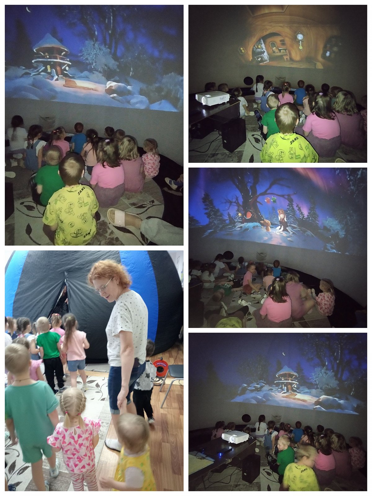 Ребята нашего детского сада побывали в мобильном планетарии и увидели красочное шоу "Зимнее путешествие Хрумки." Ребята познакомились с созвездиями зимнего ночного неба, с необыкновенными явлениями, которые можно увидеть на небе - полярным сиянием и полетом астероида. В группе поделились впечатлениями об увиденном.