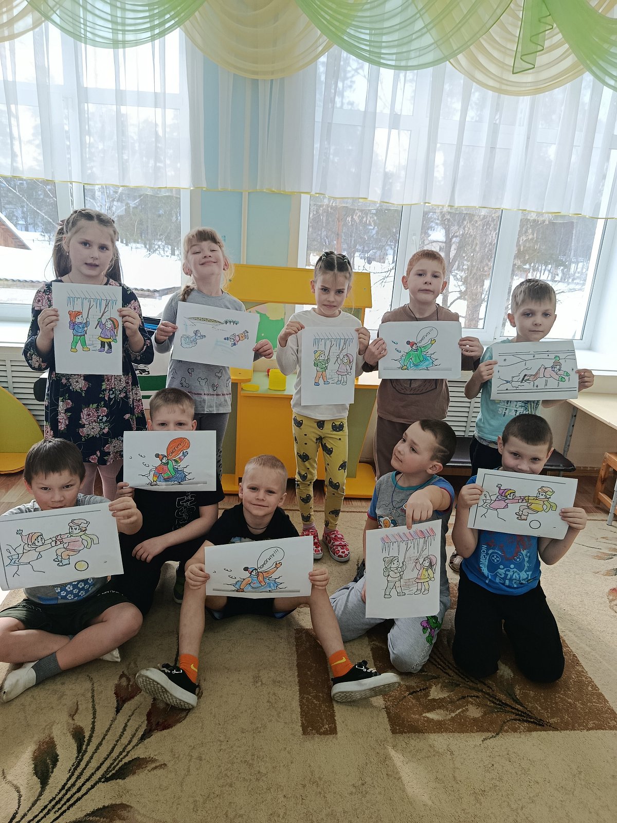 Дети с интересом обсуждали содержание картинок, описывали опасную ситуацию и высказывали своё мнение о том, как правильно поступить и помочь попавшему в беду товарищу.